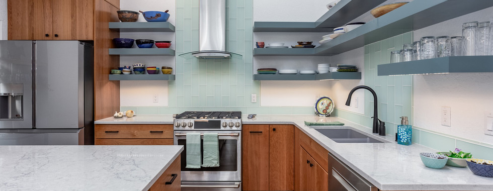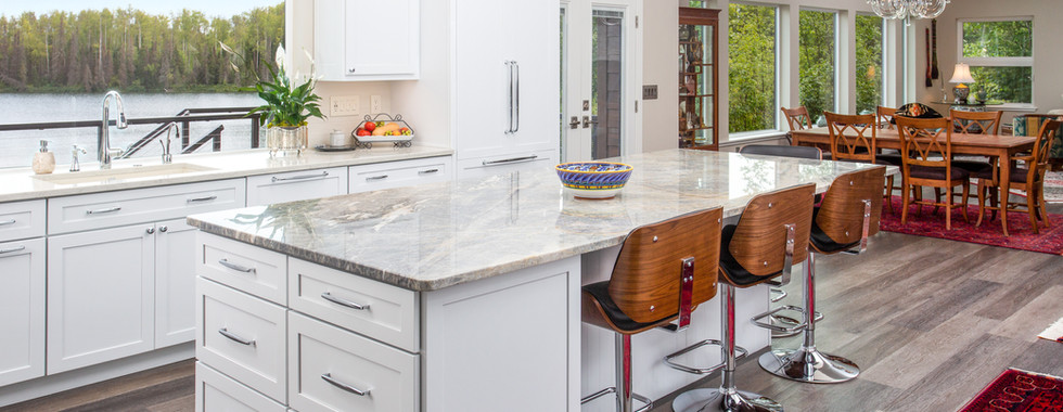 Lighting is such an important feature in a kitchen. Natural light is important, however, in dark Alaskan winters, a kitchen must have adequate lighting. Lights under and inside cabinets make a huge difference in making your kitchen look bigger than it is. It helps take away shadows that darken counter-tops and make it hard to see. Canned lighting also helps create an even light throughout the entire kitchen. This not only increases the visibility of food prep but also creates a warm and open atmosphere for anyone spending time in your kitchen. Never underestimate the power of lighting.